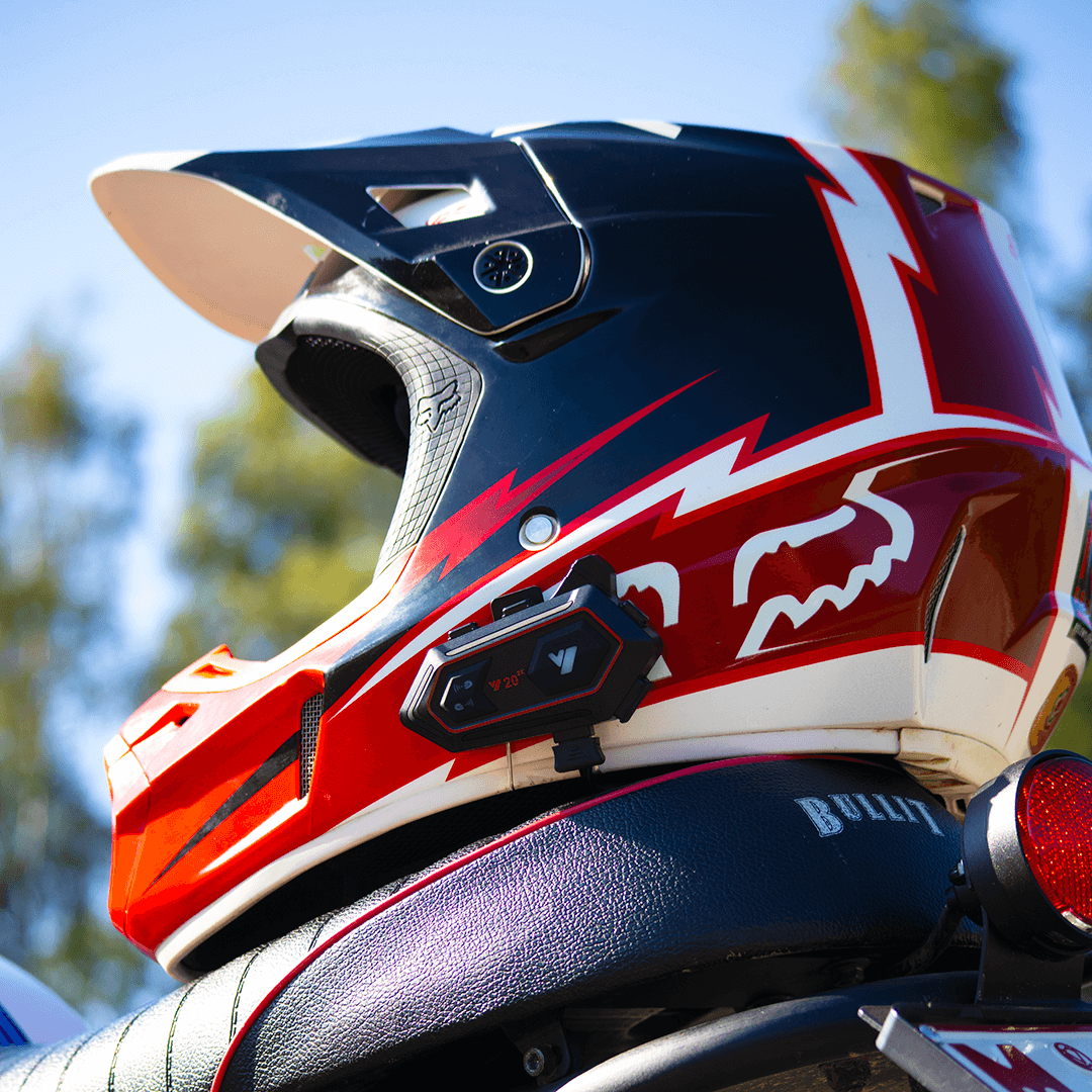 Le kit mains libres Ridecom offre une portée intercom allant jusqu'à 1 kilomètre, vous permettant de rester en contact avec vos compagnons de route même à distance.